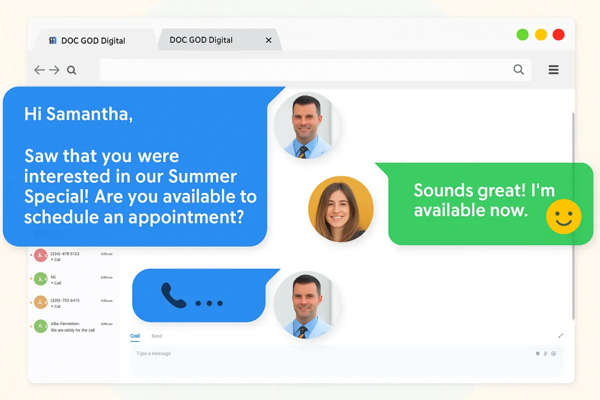 DOC GOG DIGITAL allows you to connect with your leads through Phone, Voicemail Drops, SMS/MMS, Emails, GMB Messages, and even Facebook Messenger.